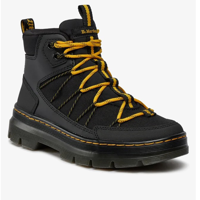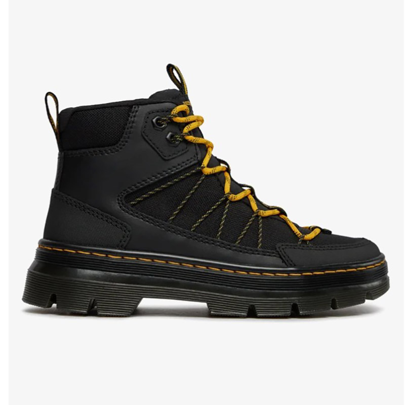 Τα ανδρικά μποτάκια Dr. Martens 31185001 Buwick σε χρώμα Black είναι σχεδιασμένα για μέγιστη αντοχή και καθημερινή προστασία. Κατασκευασμένα από το ανθεκτικό υλικό Extra Tough 50/50 σε συνδυασμό με το Hydro leather, προσφέρουν εξαιρετική ανθεκτικότητα στο νερό, τις φθορές και τις δύσκολες καιρικές συνθήκες. Η κλασική σόλα AirWair με αντικραδασμική τεχνολογία εξασφαλίζει άνετο πάτημα, ενώ οι ενισχυμένες ραφές και ο χαρακτηριστικός κίτρινος φιόγκος της Dr. Martens ολοκληρώνουν το αυθεντικό, στιβαρό look. Ιδανικά για άνδρες που χρειάζονται ένα μοντέρνο αλλά και υπερ-ανθεκτικό μποτάκι για καθημερινή χρήση, εργασία ή εξορμήσεις.