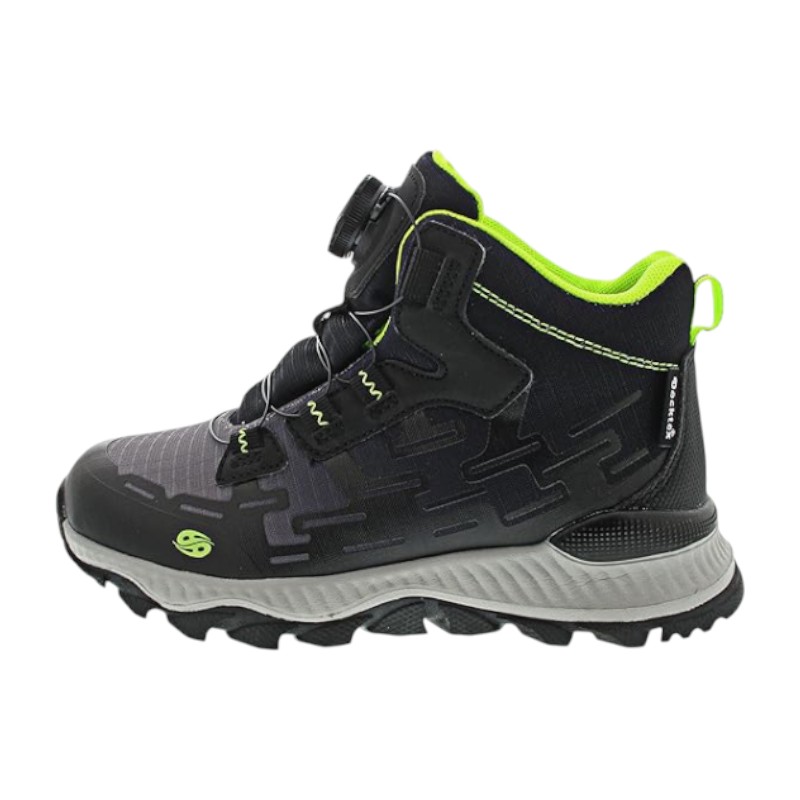 Αδιάβροχη και αναπνεύσιμη – αντιολισθητική σόλα με προφίλ – πρακτικό κλείσιμο με στρίψιμο – μαλακή επένδυση στην άκρη και τη γλώσσα του άξονα – θηλιά φτέρνας – ενισχυμένη προστασία φτέρνας και δακτύλων – αδιάβροχες μπότες για δροσερά αγόρια
