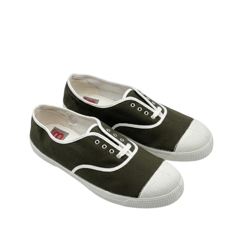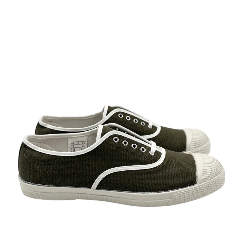 Το Bensimon Vintage Tennis σε χακί απόχρωση αποτελεί ένα διαχρονικό sneaker που συνδυάζει απλότητα και άνεση. Κατασκευασμένο από 100% βαμβακερό καμβά, είναι ιδιαίτερα ελαφρύ και ιδανικό για καθημερινή χρήση, ειδικά τους ανοιξιάτικους και καλοκαιρινούς μήνες. Η σόλα από καουτσούκ προσφέρει σταθερότητα και άνεση στο περπάτημα, ενώ ο κλασικός low-top σχεδιασμός με κορδόνια και μεταλλικές οπές προσδίδει αυθεντικό casual στυλ. Ταιριάζει εύκολα με κάθε outfit, από jeans μέχρι πιο χαλαρά looks.