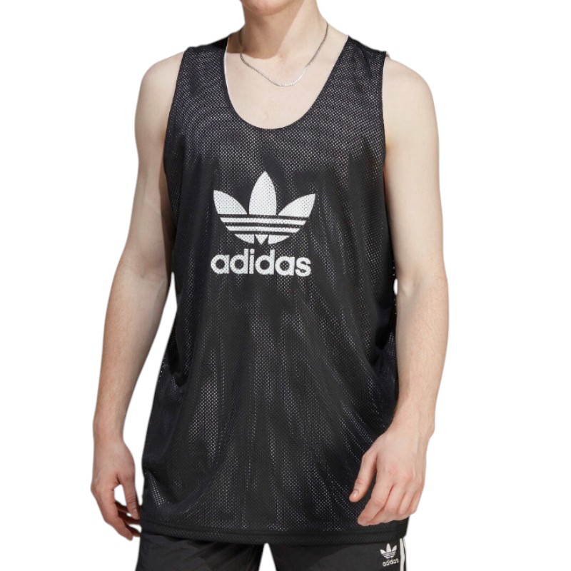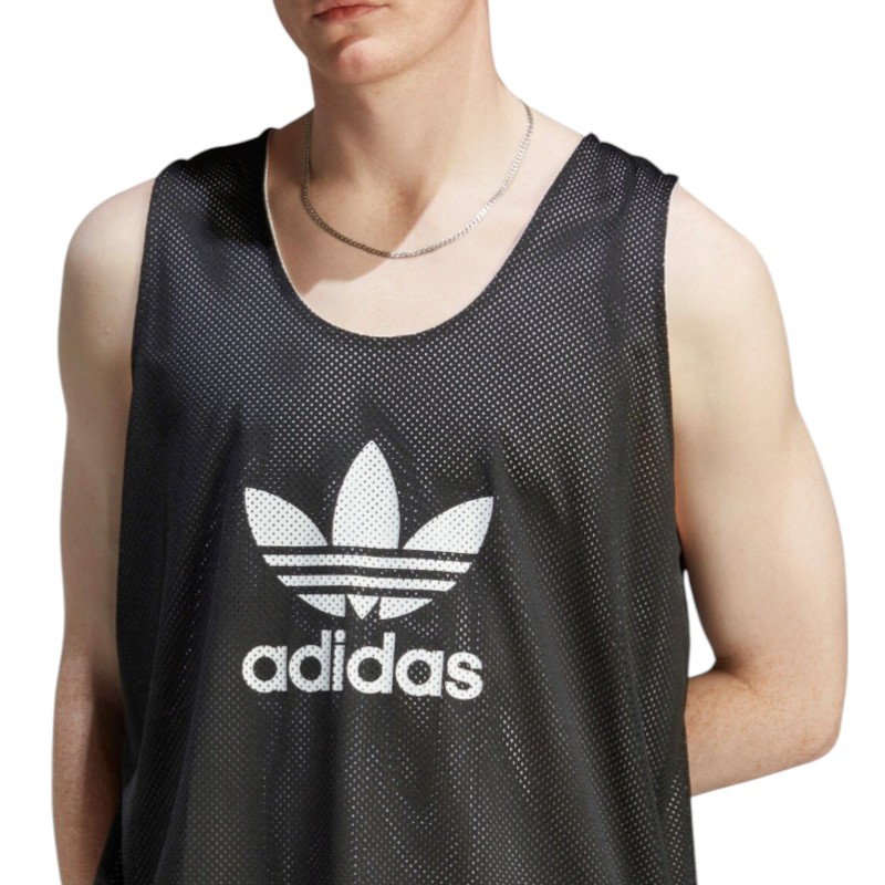 Ανακαλύψτε το αμάνικο μπλουζάκι Basketball Trefoil της adidas, που συνδυάζει στυλ και λειτουργικότητα σε μία μοναδική εμπειρία. Με δυνατότητα διπλής όψης, μπορείτε να αλλάξετε το χρώμα 360 μοίρες απλώς γυρίζοντάς το από την ανάποδη, αποκτώντας δύο μπλουζάκια σε ένα. Το διχτυωτό υλικό εξασφαλίζει εξαιρετική αναπνοή και άνεση, ενώ το ειδικό κόψιμο basketball προσφέρει απόλυτη ελευθερία κινήσεων. Η βαθιά στρογγυλή λαιμόκοψη και το λογότυπο σε αντίθεση στο στήθος και κάτω από τον λαιμό προσδίδουν μοντέρνο στυλ σε κάθε εμφάνιση. Ιδανικό για αθλητικές δραστηριότητες ή casual streetwear.