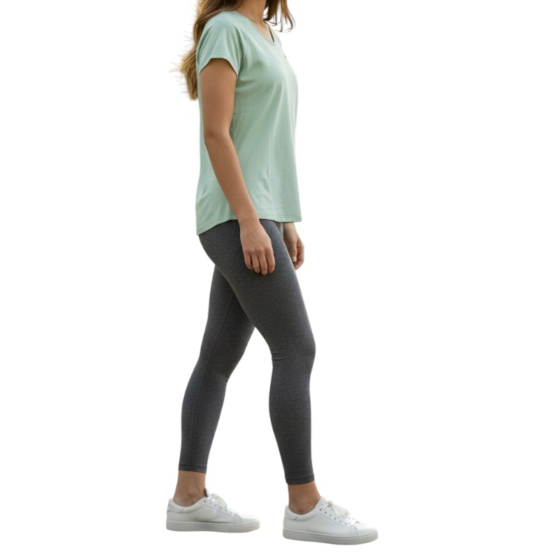 Γυναικείο αθλητικό μπλουζάκι με ελαφρύ melange ύφασμα που απομακρύνει την υγρασία. Διαθέτει άνοιγμα στην πλάτη για καλύτερο αερισμό και κανονική εφαρμογή για άνεση σε κάθε δραστηριότητα.