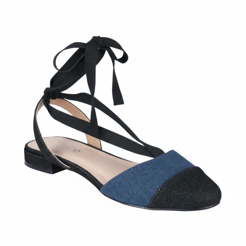 Οι Heine Baleriny από τη Heine αποτελούν μια κομψή και μοντέρνα επιλογή για καθημερινές αλλά και πιο προσεγμένες εμφανίσεις. Πρόκειται για μια δίχρωμη μπαλαρίνα τύπου slingback, κατασκευασμένη από denim ύφασμα σε μπλε και μαύρη απόχρωση που δημιουργεί ένα ιδιαίτερο και διαχρονικό στυλ. Η μυτερή μύτη χαρίζει κομψότητα και θηλυκότητα στο σχέδιο, ενώ το χαμηλό τετράγωνο τακούνι ύψους περίπου 1,5–2 εκ. προσφέρει άνεση και σταθερότητα στο περπάτημα. Το ρυθμιζόμενο λουράκι που δένει στον αστράγαλο εξασφαλίζει καλύτερη εφαρμογή και στήριξη, ολοκληρώνοντας ένα παπούτσι που συνδυάζει στυλ, άνεση και ευελιξία για κάθε στιγμή της ημέρας.