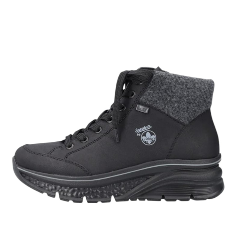 Η εύκαμπτη και εξαιρετικά ελαφριά σόλα προσφέρει αίσθηση ξεκούρασης ακόμη και μετά από πολλές ώρες χρήσης, ενώ ο αποσπώμενος και μαλακά ενισχυμένος πάτος αυξάνει σημαντικά την άνεση. Η υδροαπωθητική μεμβράνη RiekerTEX προστατεύει από την υγρασία και το κρύο, ενώ η ζεστή, απαλή επένδυση διατηρεί το πόδι ζεστό στις χαμηλές θερμοκρασίες. Ένα αξιόπιστο και άνετο υπόδημα για τις κρύες ημέρες του χειμώνα, ιδανικό για καθημερινή χρήση.