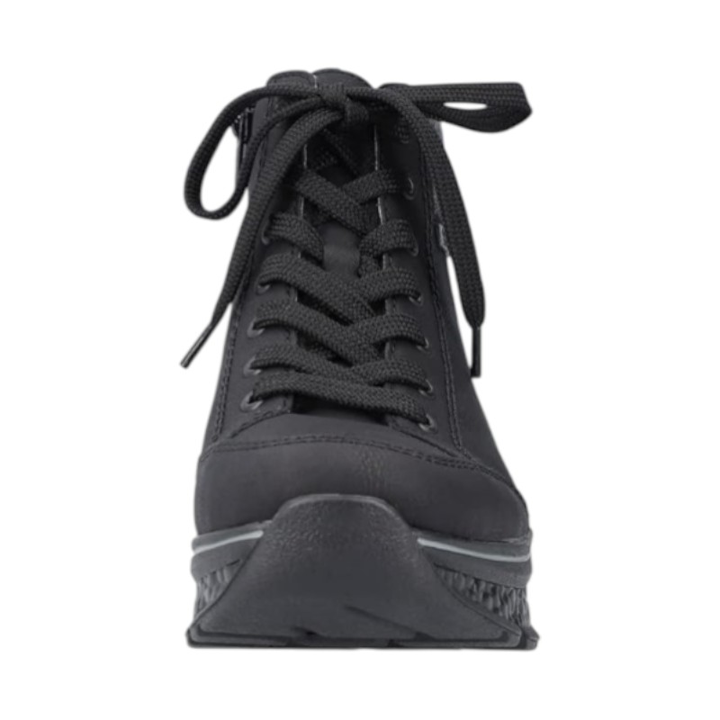 Αντιμετωπίστε το κρύο με άνεση και στυλ χάρη στα μαύρα μποτάκια με κορδόνια της Rieker. Ο πρακτικός συνδυασμός κορδονιών και πλαϊνού φερμουάρ εξασφαλίζει σταθερή εφαρμογή και εύκολη τοποθέτηση, προσφέροντας ιδανική στήριξη στο πόδι σε κάθε βήμα.