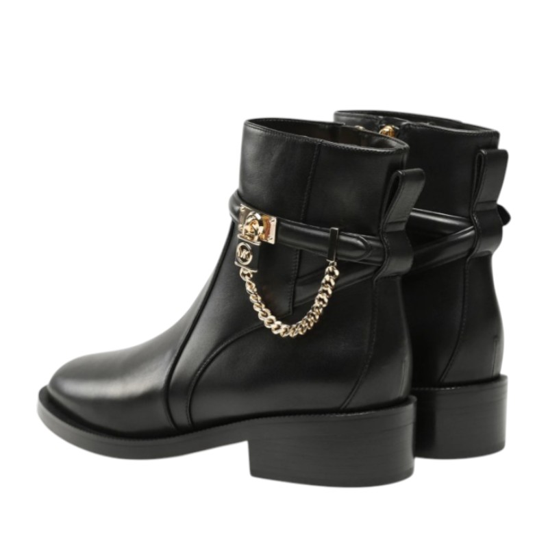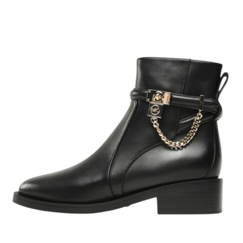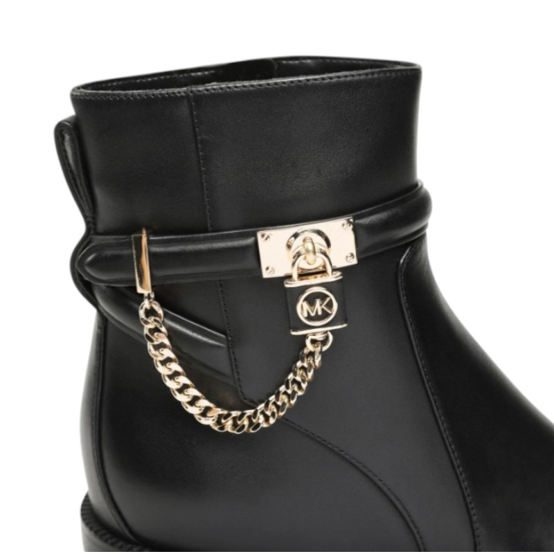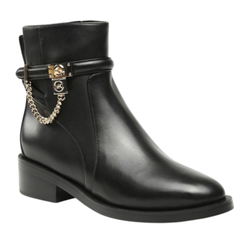 Τα γυναικεία μποτάκια Michael Kors Hamilton αποτελούν μια κομψή και πολυτελή επιλογή για τις καθημερινές αλλά και πιο προσεγμένες εμφανίσεις του χειμώνα. Κατασκευασμένα από υψηλής ποιότητας γνήσιο δέρμα, προσφέρουν ανθεκτικότητα και άψογη εφαρμογή, ενώ η minimal αισθητική τους με μεταλλικές λεπτομέρειες και το χαρακτηριστικό διακοσμητικό λουκέτο της σειράς Hamilton προσθέτει μία διακριτική πινελιά πολυτέλειας. Η σταθερή σόλα και η άνετη εφαρμογή εξασφαλίζουν ξεκούραστο περπάτημα καθ’ όλη τη διάρκεια της ημέρας, καθιστώντας τα ιδανικά για εργασία, βόλτες και ταξίδια. Το διαχρονικό μαύρο χρώμα τα καθιστά εύκολα συνδυάσιμα με jeans, φορέματα ή office σύνολα, προσφέροντας στυλ και αυτοπεποίθηση σε κάθε σας εμφάνιση.