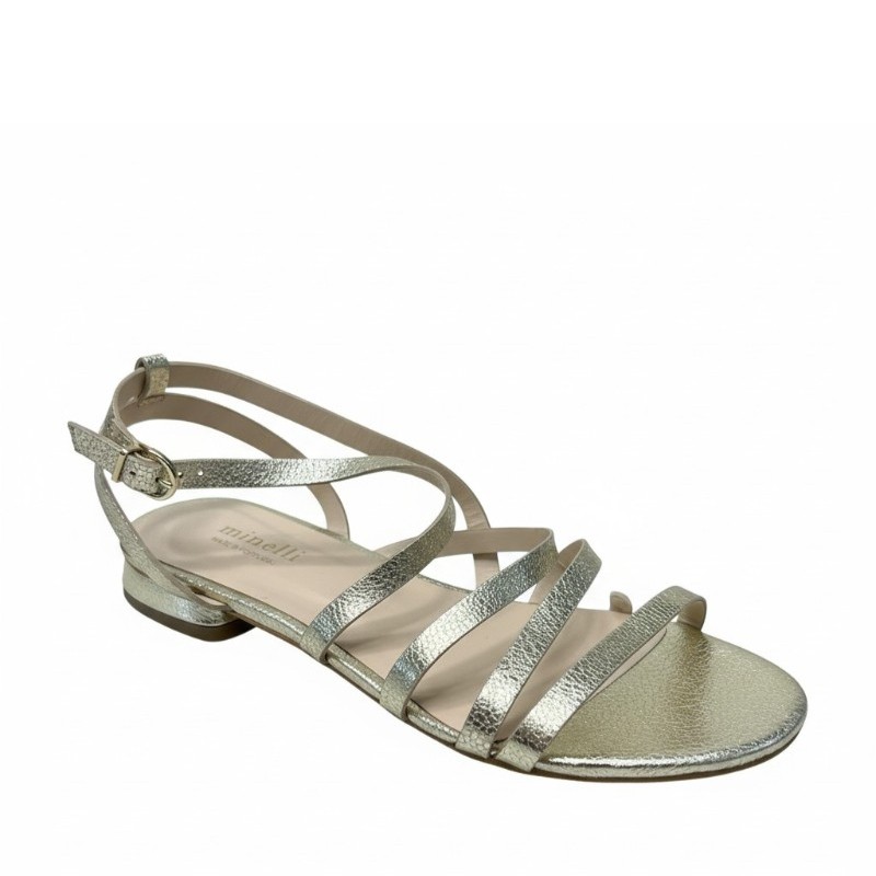 Τα γυναικεία δερμάτινα σανδάλια Minelli Hortia F630021MET της Minelli σε χρυσό χρώμα προσφέρουν κομψό σχεδιασμό, ποιοτική δερμάτινη κατασκευή και άνετη εφαρμογή. Ιδανική επιλογή για καλοκαιρινά σύνολα που θέλουν μια διακριτική πινελιά λάμψης.