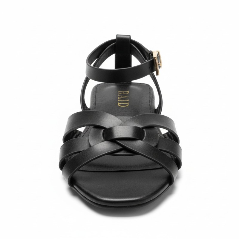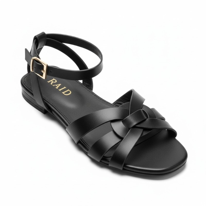 Τα γυναικεία φλατ σανδάλια της RAID σε μαύρο χρώμα αποτελούν μια κομψή και διαχρονική επιλογή για τις καλοκαιρινές σας εμφανίσεις. Ο minimal σχεδιασμός τους συνδυάζει στυλ και άνεση, καθιστώντας τα ιδανικά για καθημερινή χρήση. Το επάνω μέρος διαθέτει κομψά χιαστί λουράκια στο μπροστινό μέρος, τα οποία αγκαλιάζουν το πόδι και προσθέτουν μια μοντέρνα πινελιά στο συνολικό design.