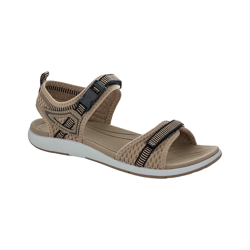 Πρόκειται για τα γυναικεία σανδάλια αναψυχής Loap Carmela. Έχουν διχτυωτό επάνω μέρος που αναπνέει και υφασμάτινα λουράκια, με ρυθμιζόμενο λουράκι στον αστράγαλο με πόρπη και ένα στο κουντεπιέ με βέλκρο.