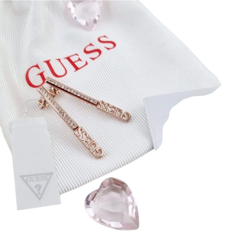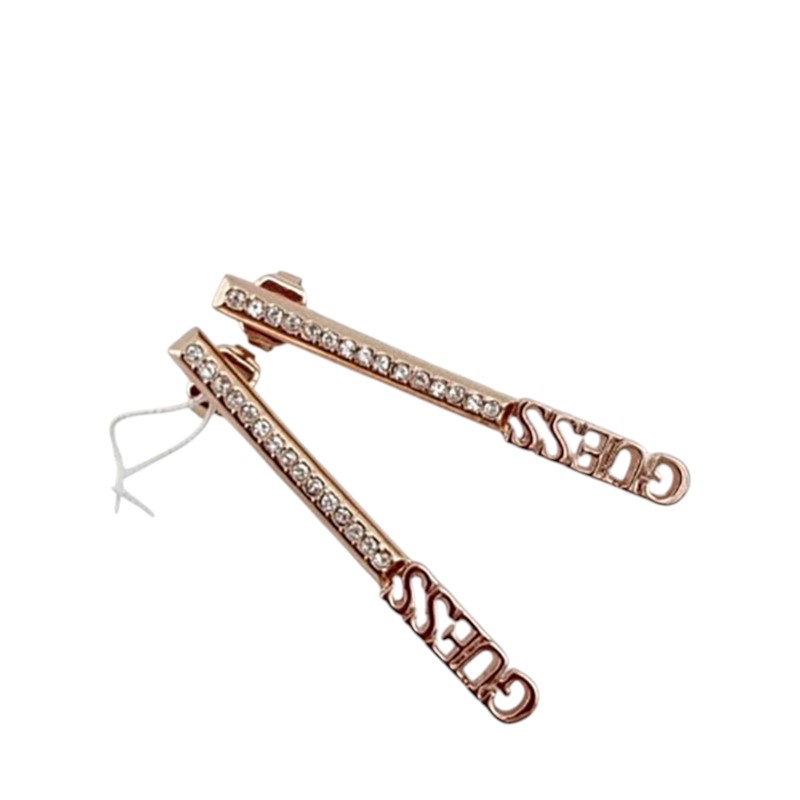 Κομψά σκουλαρίκια Guess σε ροζ χρυσό χρώμα, ιδανικά για διαχρονικές και λαμπερές εμφανίσεις σε κάθε περίσταση.
