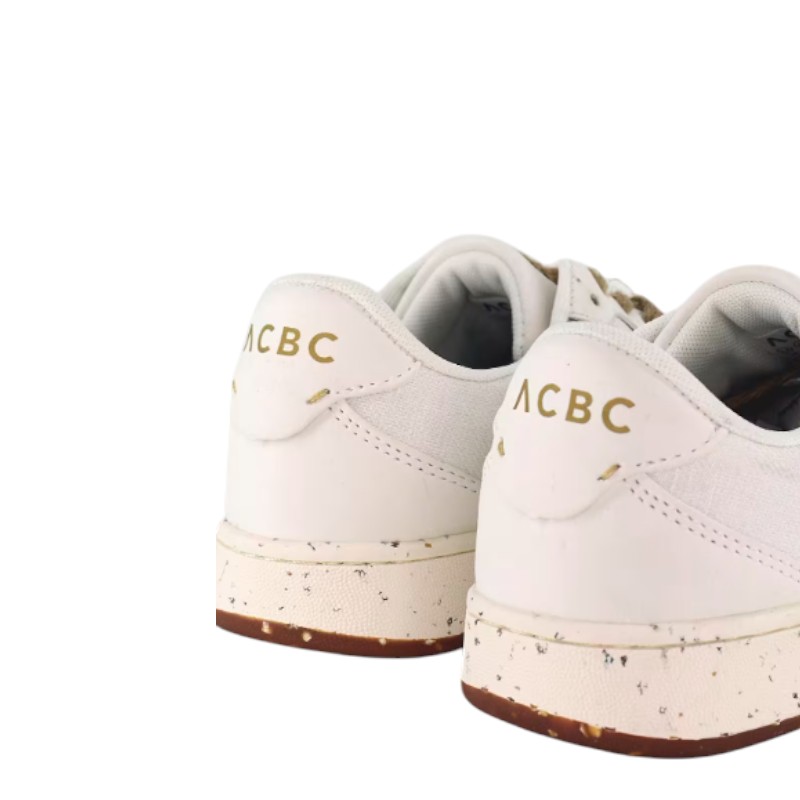 Λευκά γυναικεία αθλητικά παπούτσια Acbc Evergreen, κατασκευασμένα από φυσικές ίνες κάνναβης με επένδυση Seacell και σόλα από φελλό και ανακυκλωμένα υλικά. Ιδανικά για άνεση, στυλ και βιώσιμες καθημερινές εμφανίσεις.