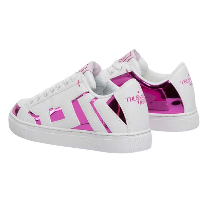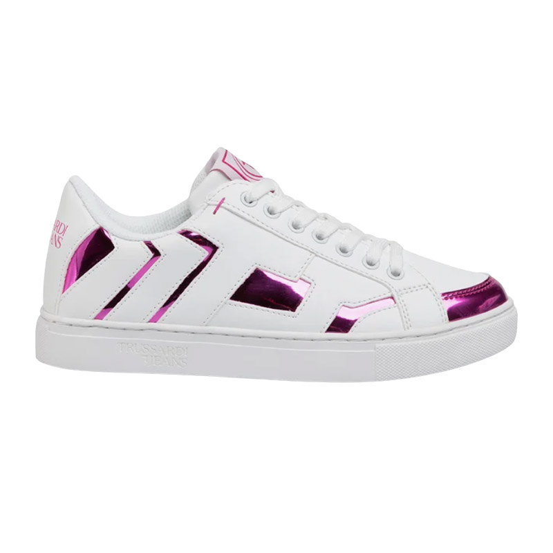 Λευκά sneakers Trussardi με επάνω μέρος από απομίμηση δέρματος, σόλα πάχους 2 cm και κορδόνια. Άνετα και κομψά, ιδανικά για καθημερινή χρήση.