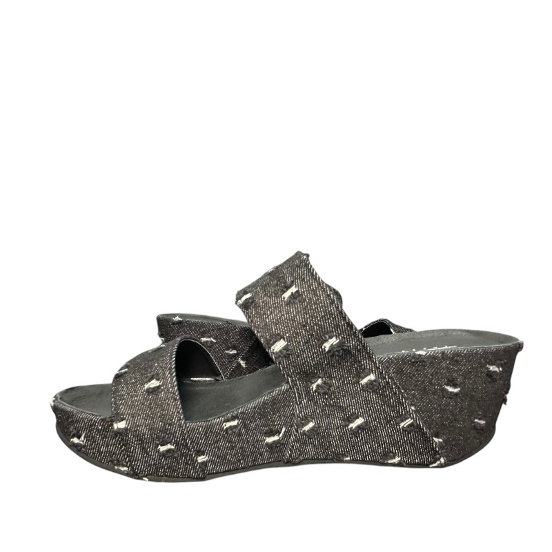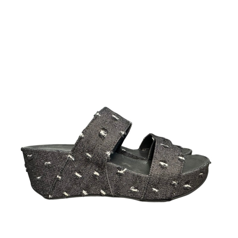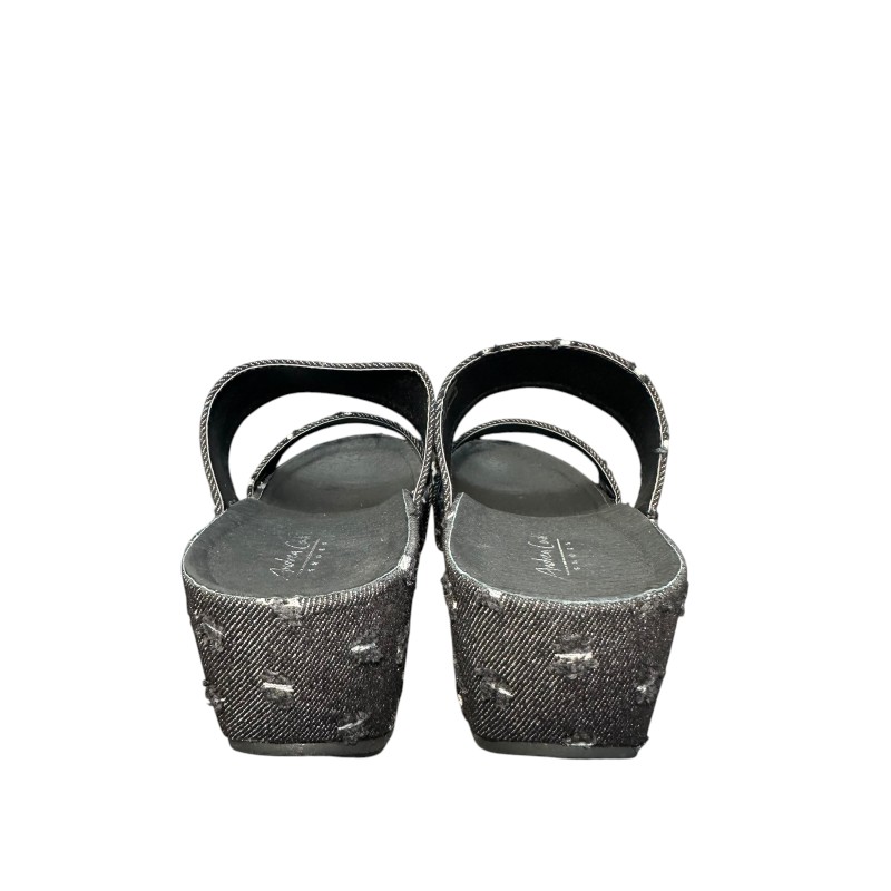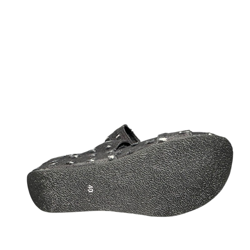 Το ιδιαίτερο distressed εφέ του τζιν υφάσματος, με εμφανείς λευκές και μαύρες ραφές, δημιουργεί ένα εντυπωσιακό ανάγλυφο μοτίβο που ξεχωρίζει και χαρίζει μοναδικό χαρακτήρα στο παπούτσι. Η wedge/platform σόλα προσφέρει επιπλέον ύψος, διατηρώντας παράλληλα σταθερότητα και άνεση στο περπάτημα.