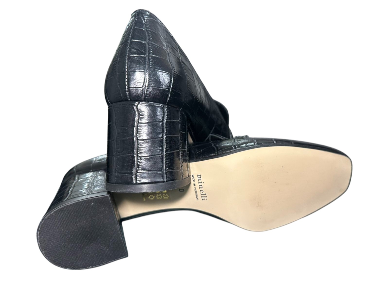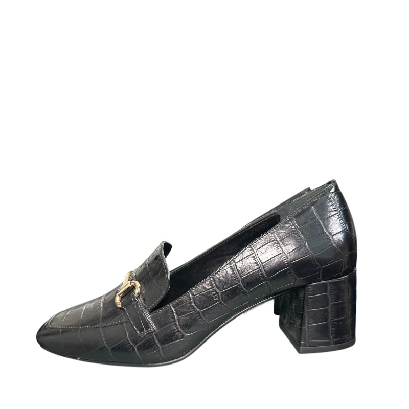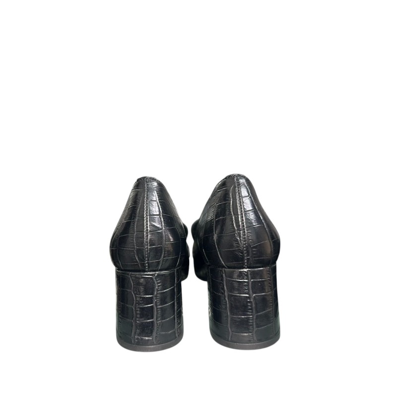 Η μαύρη croco υφή τους χαρίζει ένα ιδιαίτερο και sophisticated χαρακτήρα, που αναβαθμίζει ακόμη και το πιο απλό outfit. Συνδυάζονται ιδανικά με υφασμάτινα παντελόνια και κοστούμια για το γραφείο, αλλά και με τζιν ή φορέματα για πιο chic καθημερινές εμφανίσεις. Ένα ευέλικτο παπούτσι που ισορροπεί ανάμεσα στη θηλυκότητα της γόβας και την άνεση του μοκασινιού.