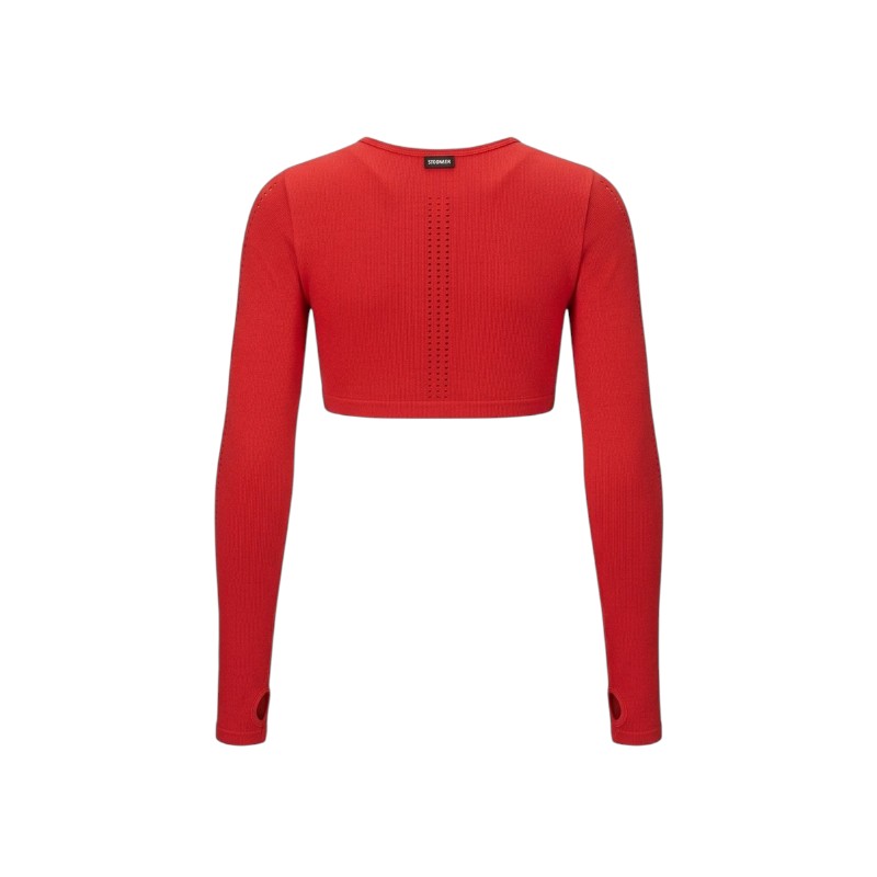 Η απρόσκοπτη κατασκευή (χωρίς ραφές) εξασφαλίζει άψογη εφαρμογή και μειώνει τους ερεθισμούς, ενώ το διαπνέον ύφασμα με γρήγορου στεγνό διατηρεί το σώμα στεγνό και άνετο ακόμα και στις πιο έντονες προπονήσεις. Τα μακριά μανίκια με υποδοχές για τους αντίχειρες (thumbholes) προσφέρουν επιπλέον σταθερότητα και πρακτικότητα, καθιστώντας το ιδανικό για fitness, yoga ή κάθε είδους δραστηριότητα.