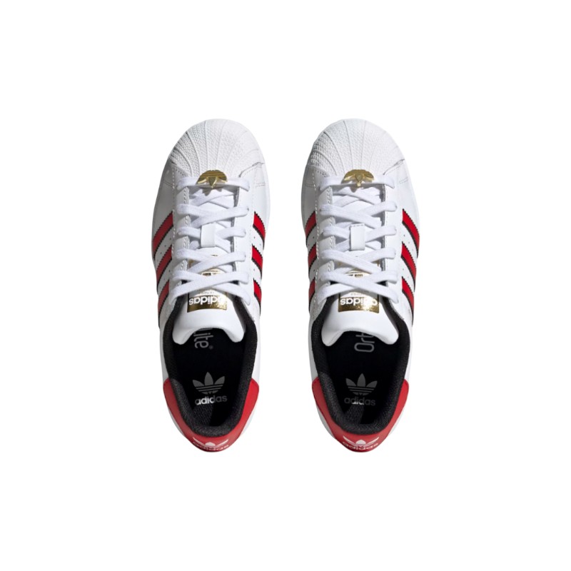Από κλασικό κομμάτι από σκληρό ξύλο της δεκαετίας του ’70 μέχρι βασικό κομμάτι για καθημερινά παπούτσια, τα αθλητικά παπούτσια adidas Superstar είναι ένα άμεσα αναγνωρίσιμο εμβληματικό μοντέλο. Αυτή η παιδική έκδοση των παπουτσιών διατηρεί την κλασική σιλουέτα με το διάσημο σχήμα κελύφους στη μύτη για επιπλέον στυλ και προστασία. Οι ιριδίζουσες 3 ρίγες διαθέτουν καθαρό συνθετικό δέρμα στο πάνω μέρος, ενώ το μεταλλικό χρυσό λογότυπο ολοκληρώνεται στη γλώσσα και στα πλάγια. Το αποτέλεσμα; Μια θρυλική καθημερινή εμφάνιση.
