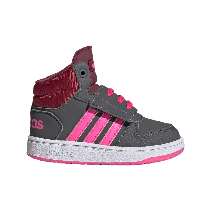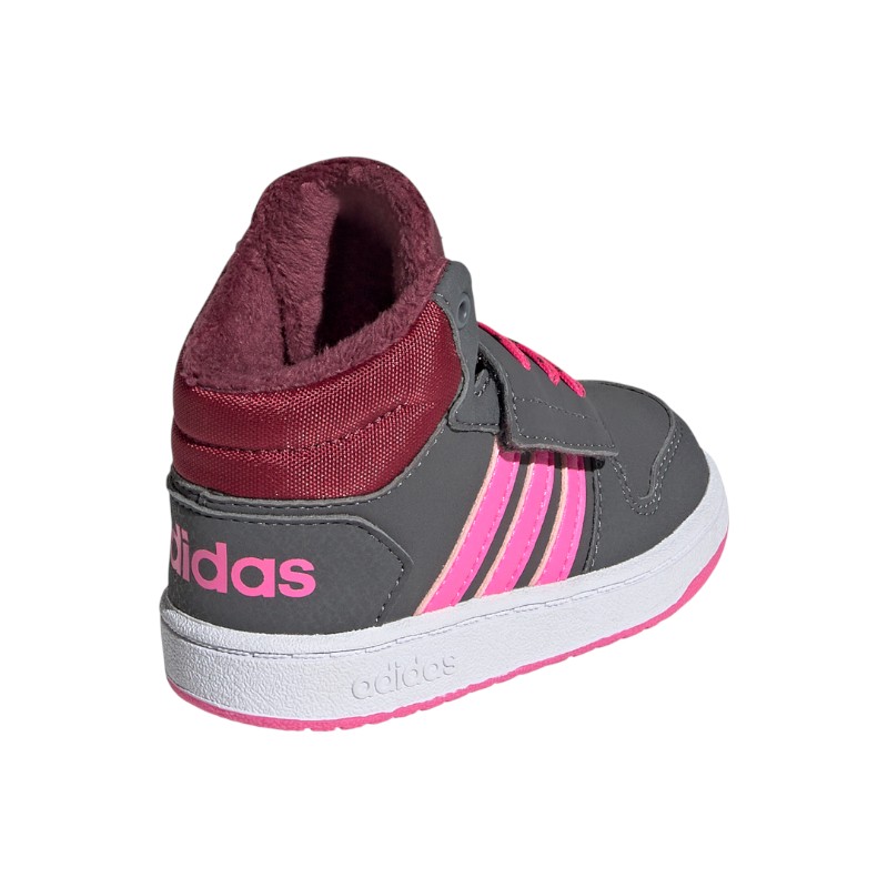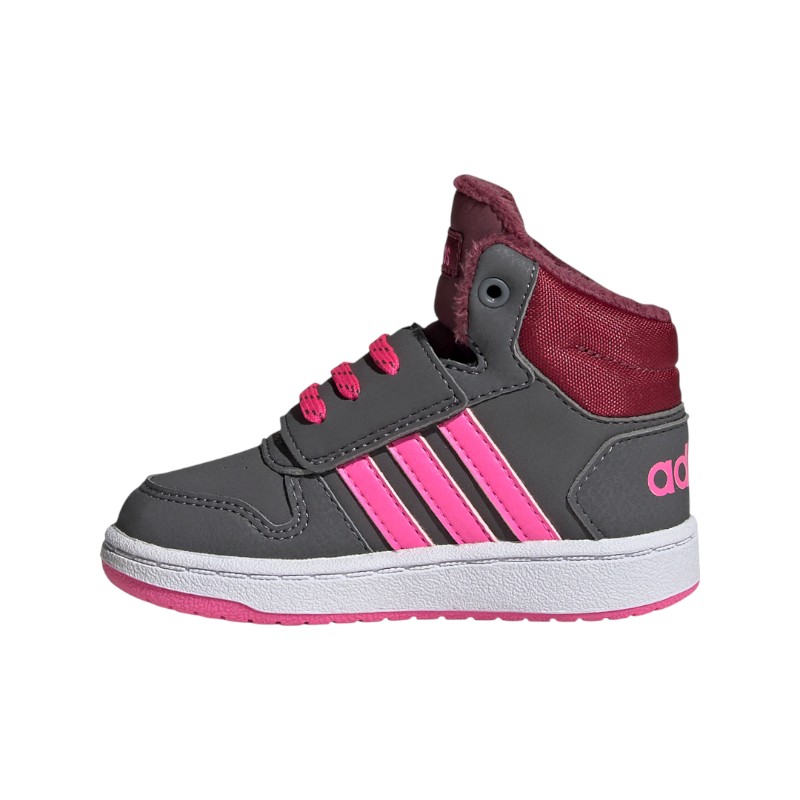 Adidas αθλητικά παπούτσια. Το επάνω μέρος από οικολογικό δέρμα διαθέτει μονωμένο, ψηλό κολάρο. Η μαλακή επένδυση και η μαλακή εσωτερική σόλα εξασφαλίζουν την κατάλληλη άνεση. Η σόλα είναι κατασκευασμένη από ανθεκτικό, αντιολισθητικό καουτσούκ. Το πίσω μέρος και η σόλα είναι διακοσμημένα με το όνομα της μάρκας. Παπούτσια που φοριούνται και βγαίνουν με κούμπωμα Velcro. Οι εμβληματικές τρεις ρίγες της adidas είναι τοποθετημένες στο πλάι. Ιδανικά υποδήματα για κάθε παιδικό ντύσιμο.